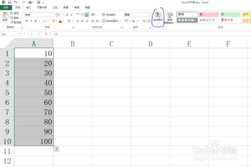 在菜单栏起头项下样式功能区找到前提格局号令。