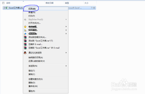 右键单击Excel图标,在弹出的右键菜单中选中打开号令。
