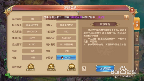 要想知道温泉卡的用法首先我们要知道怎么泡温泉,泡温泉需要插手家族,在家族界面我们点击“回抵家族”。