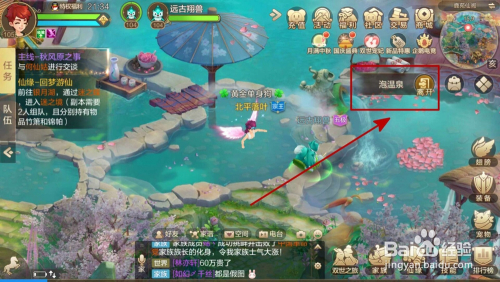 我们在家族地图左上角可以看到几个温泉池,我们点击温泉池里的“泡温泉”。