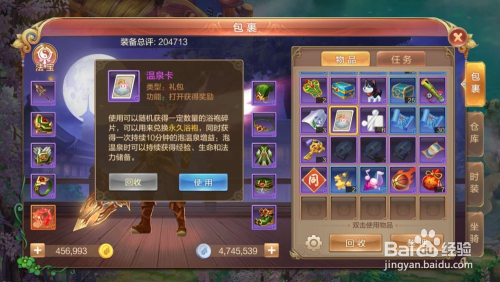到那边后我们打开背包,找到温泉卡,然后点击利用。