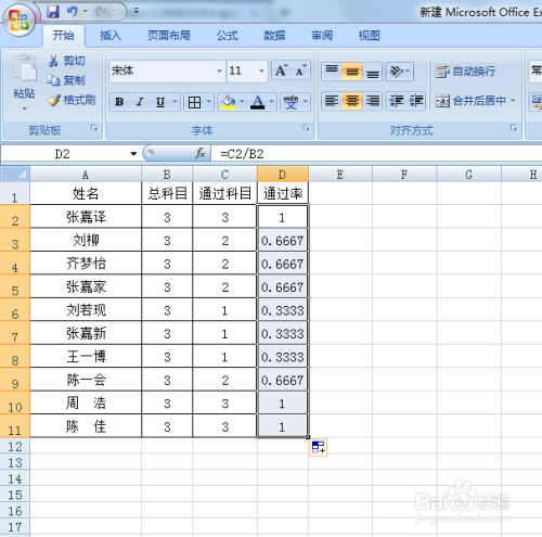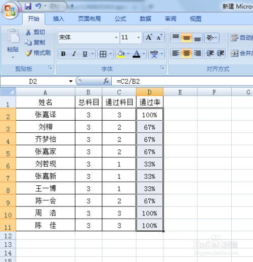 第二步:按照本身的需要对表格数据进行求百分比操作。