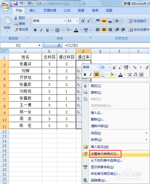 第一步:选中要酿成百分比的数据,单击鼠标右键选择“设置单位格格局”。