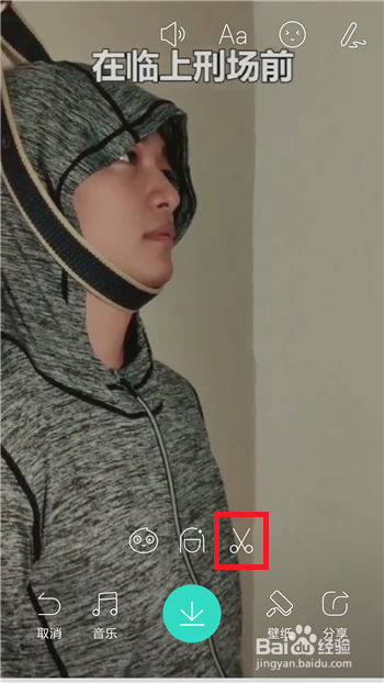 接下来会进入到视频的播放界面,在播放界面中有一个铰剪的图形,点击这个按钮,如图所示。