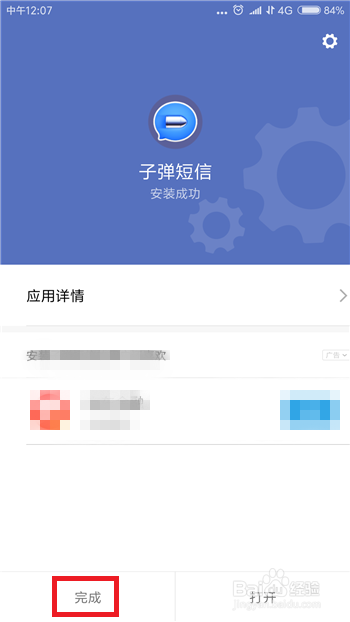 接下来系统会提醒安装当作功,然后点击左下角的【完当作】即可完当作枪弹短信的更新。
