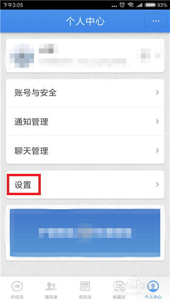 点击后会打开小我中间界面,找到【设置】功能选项并点击打开设置功能界面。