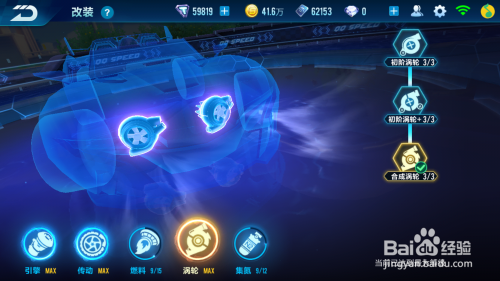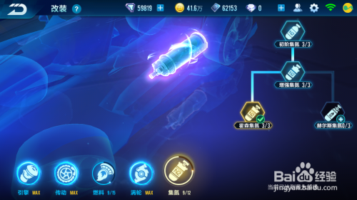 最后的就是最主要的“集氮”,这条目游戏很年夜一部门是看就是氮气的合理运用的,这个有两条分支,选择左分支,即“霍森集氮”,增添了喷射时的动力和最高速度。