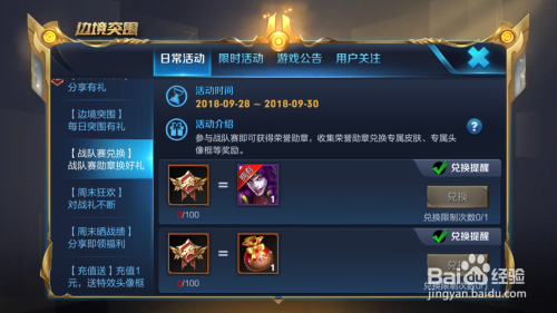 最后一个免费的皮肤就是英雄高渐离的灭亡摇滚皮肤了。这个皮肤的获得是要经由过程加入战队赛,获得战队宝箱,,从而获得声誉勋章。100个战队赛荣耀勋章就可以兑换皮肤了。