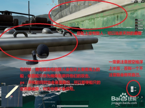 不要傻愣愣的呆在船上,碰着有狙击枪的仇敌就不利了。