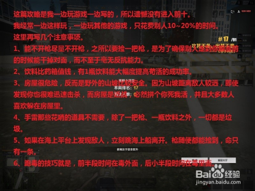 根基上按这种策略可以一边玩其他游戏一边吃鸡,虽说吃不到鸡,但前十仍是比力轻易的,这一把因为是一边写攻略一别玩的,还要截图,健忘看圈的位置了,成果刷了个远圈,2333