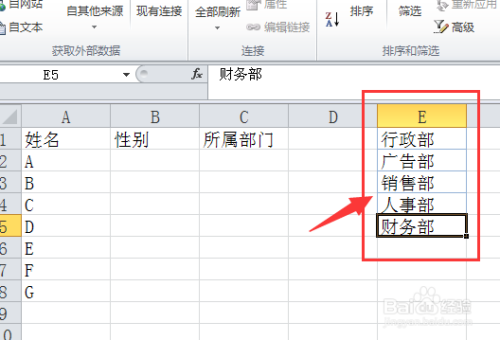 在E1:E5,单位格中,输入如下数据: