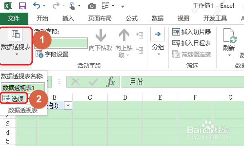 接下来点击工作表左上角的“数据透视表”-“选项”,然后勾选选项下拉菜单中的“显示报表筛选页”,如图二;