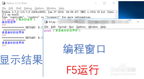 我们只需要在法式窗口编写如下法式,再按下F5键,运行即可。在编写法式里,需注重缩进(按Tab键),不然会呈现语法错误。