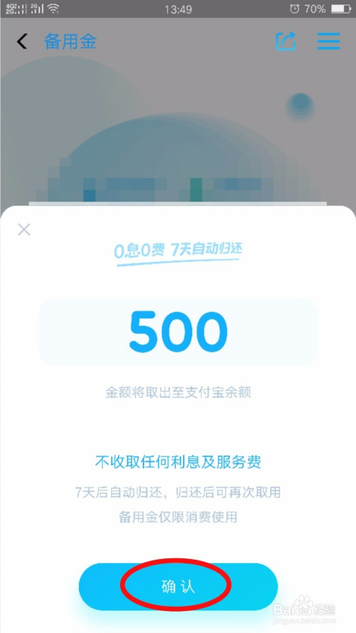 - 备用金领取之日起头,会在7天后主动偿还。