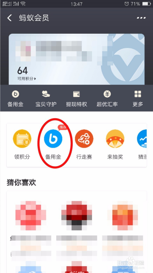 进入到这个会员界面之后点击【备用金】这个选项。如图所示