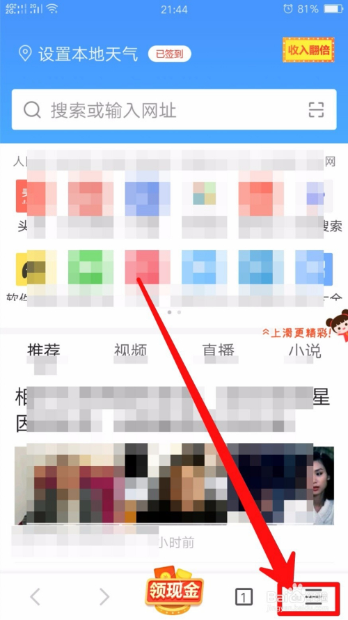在应用的首页点击右下角的三横外形小图标。如图所示