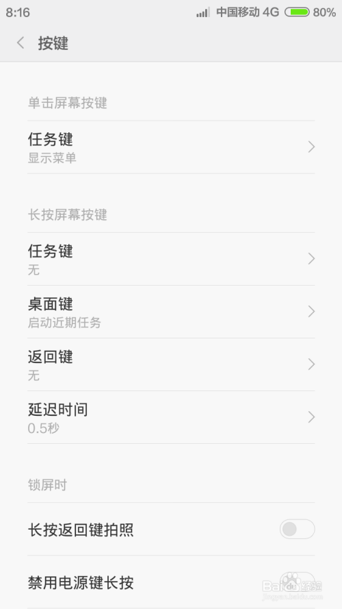 将单击使命键设置为“显示菜单”,将长按桌面键设置为“启动近期使命”。