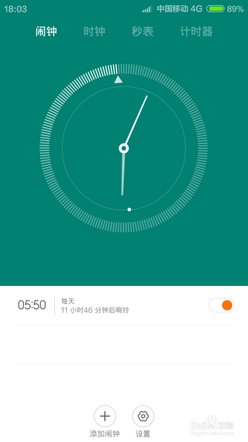打开时钟应用之后,我们可以很清晰的看到,第一个选项页面就是闹钟应用。