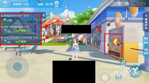 进入休闲区完当作“小游戏/互动/签到/挖宝”,可以获得点券