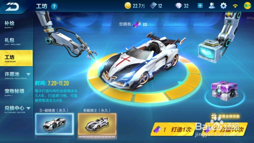 然后到第7格后,先买一组,然撤退退却回你的飞车界面,再次进入工坊,9连抽