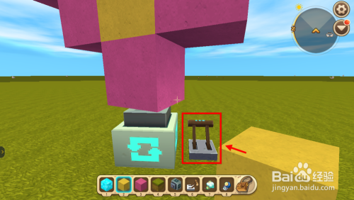地面放1个转轴方块,然后在转轴方块上面放置1个方块(肆意)。