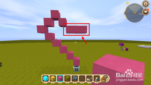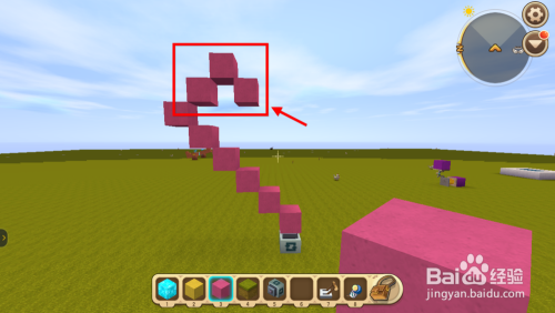 在步调1放置的方块旁边放置一个不异方块,增添一层将方块敲碎,持续放置6次。