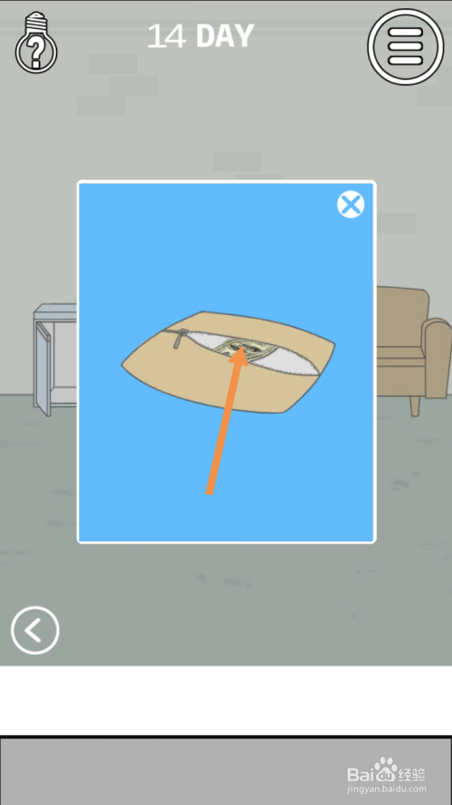 点击靠垫后,再点击靠垫。靠垫拉链拉开后,点击钱就过关了。