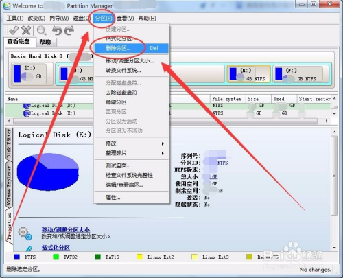 单击分区菜单,选择删除分区,可以将选中的分区删除。