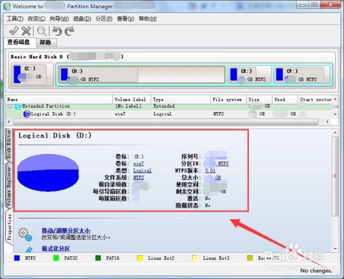 打开软后,选择任何一个磁盘分区,鄙人方窗口中就会显示该分区的信息。