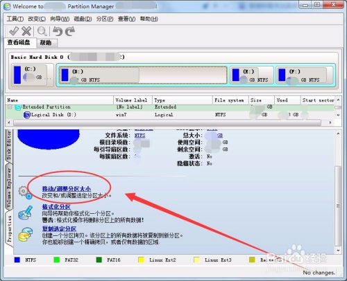 分区办理窗口中,可以看到选择的需要改变大小的分区。