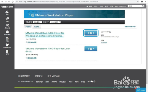 (版本均可,但请尽量选择新版本,这里选择VMware Player 15)。