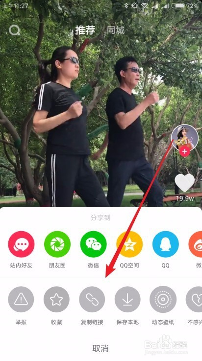 在弹出的分享菜单中,我们找到并点击“复制链接”的按钮。