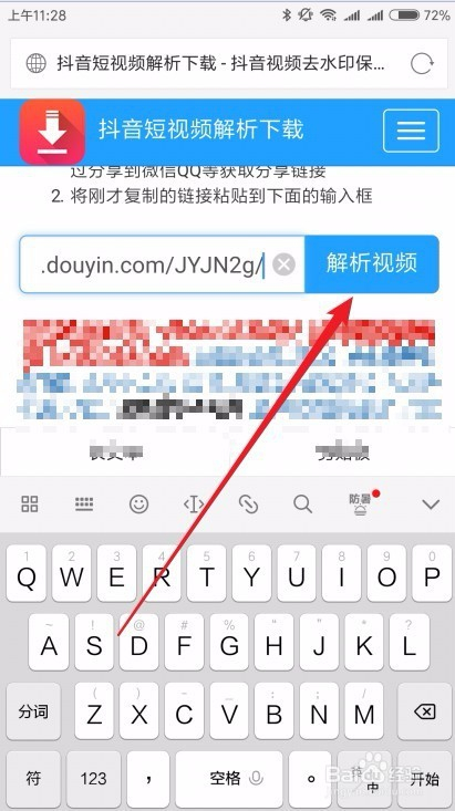 在QQ浏览器本家儿界面,我们打开百度搜刮,然后输入:抖音在线水印视频解析进行搜刮,点击搜刮成果中的快捷链接。