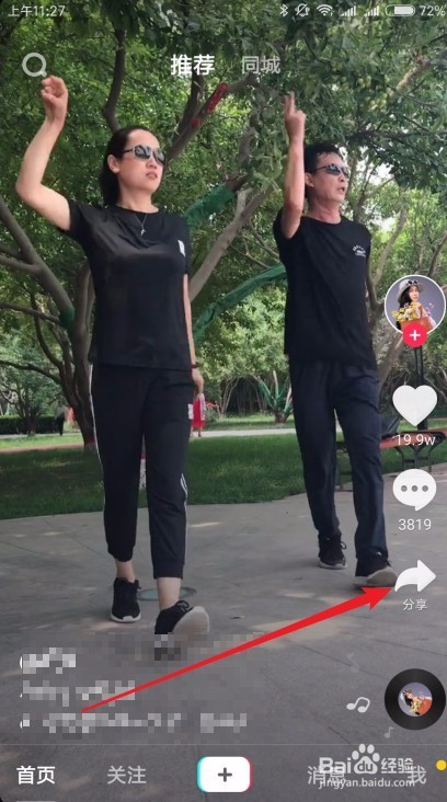 在打开的抖音短视频本家儿界面,找到我们想要保留的视频后,点击右下角的“分享”按钮。