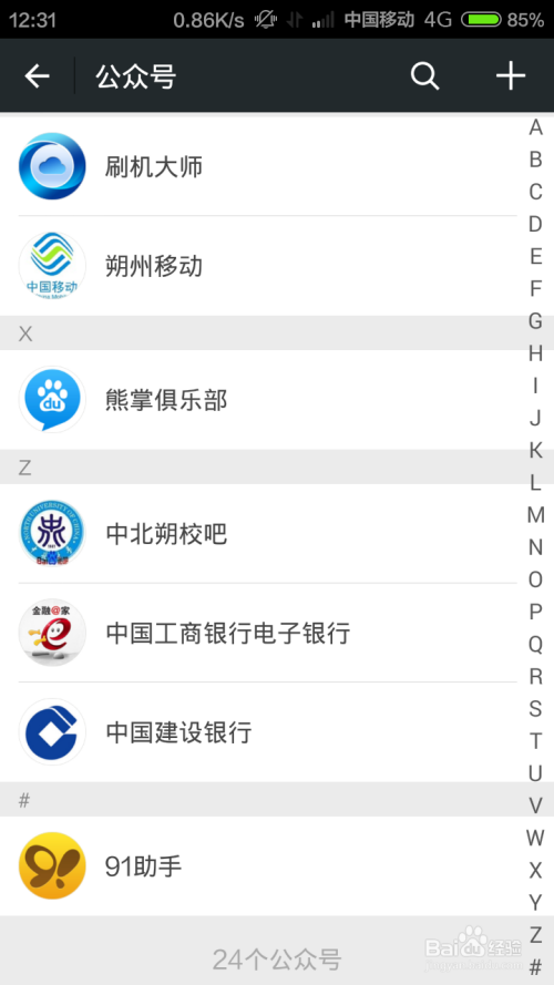 先具体看你需要哪一个银行的公家号,然后搜刮对应的银行公家号,这里我以中国扶植银行为例。