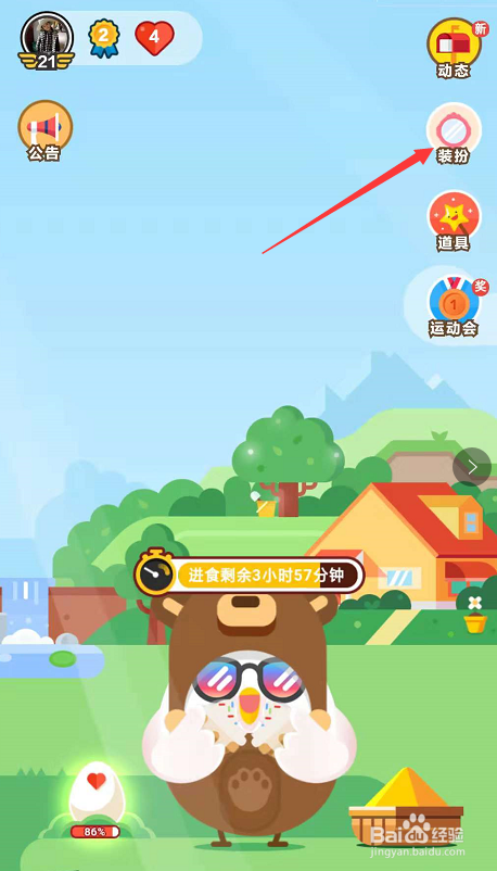打开蚂蚁庄园后,点击右上角的装扮。如图
