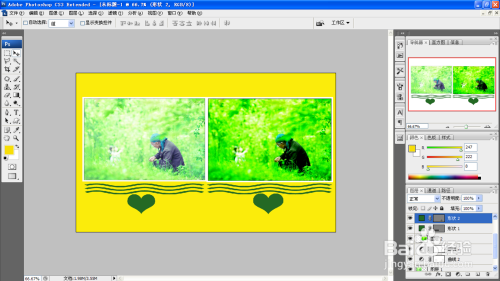 选中布景图层,设置前景色为黄色,按alt+delete键填充黄色,让图片的色调变得加倍鲜艳,如许两张图片就形当作了最光鲜的对比了哦。