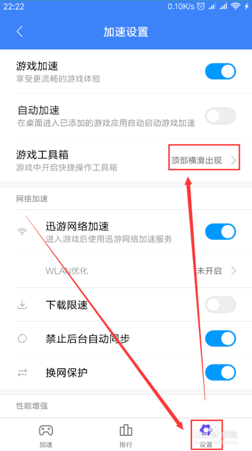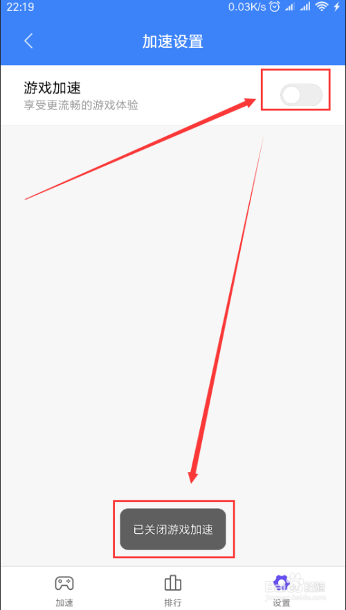 切换到“设置”,封闭最上角的“游戏加快”按钮。