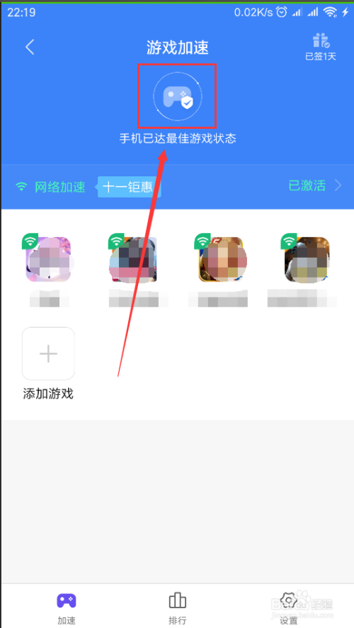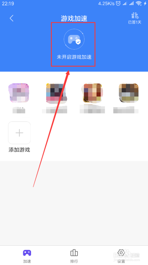 如图,在“游戏加快”的本家儿界面,就会显示该功能处于未开启状况。
