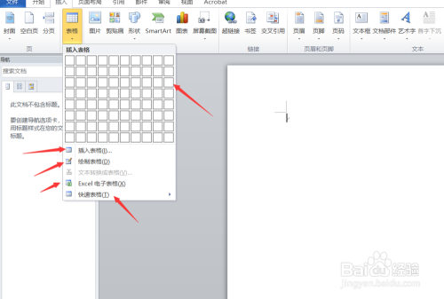 新建空白Word文件之后,我们点击插入表格,可以看到有插入表格,绘制表格,Excel电子表格和快速表格四种类型。今天小编本家儿要为大师讲解这四部门。