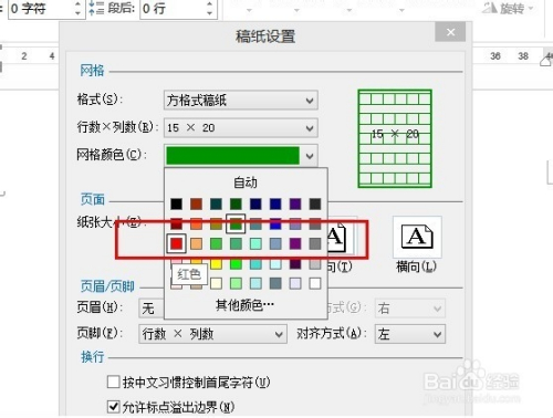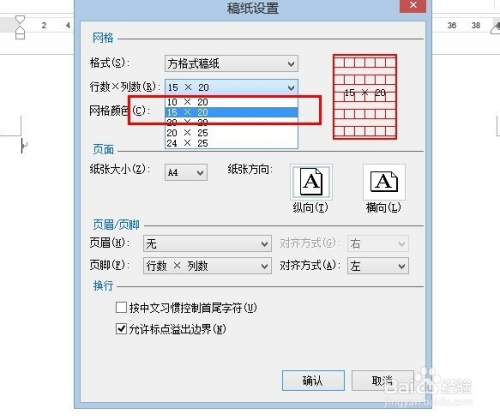接下来,点击选择“方格局稿纸”,然后选择为15*20,因为一般的稿纸是300字。