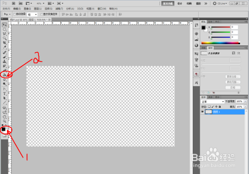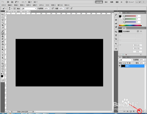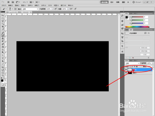 打开Photoshop(CS5)软件,将前景色设置为黑色,点击【填充东西】将图层填充为黑色;