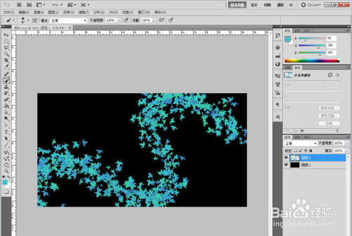 将前景色设置为浅蓝色(按照本身的爱好),在作图区点击鼠标左键不放进行绘制,此时一条斑斓的枫叶带便做好了;