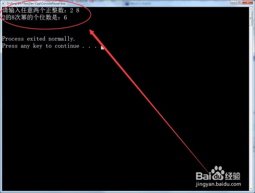 运行法式,输入肆意一个正整数和它的肆意次幂,电脑就管帐算出成果的个位数。