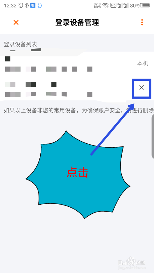 在登录的设备后面有个X号,若是想让对方强制退出登录,点击X号就可以了。如图所示