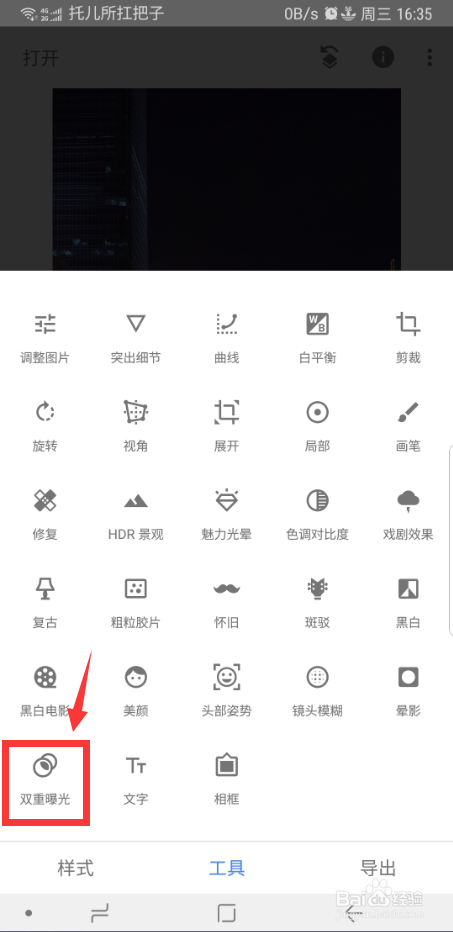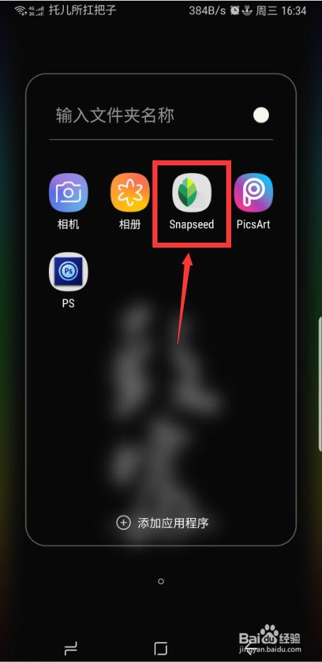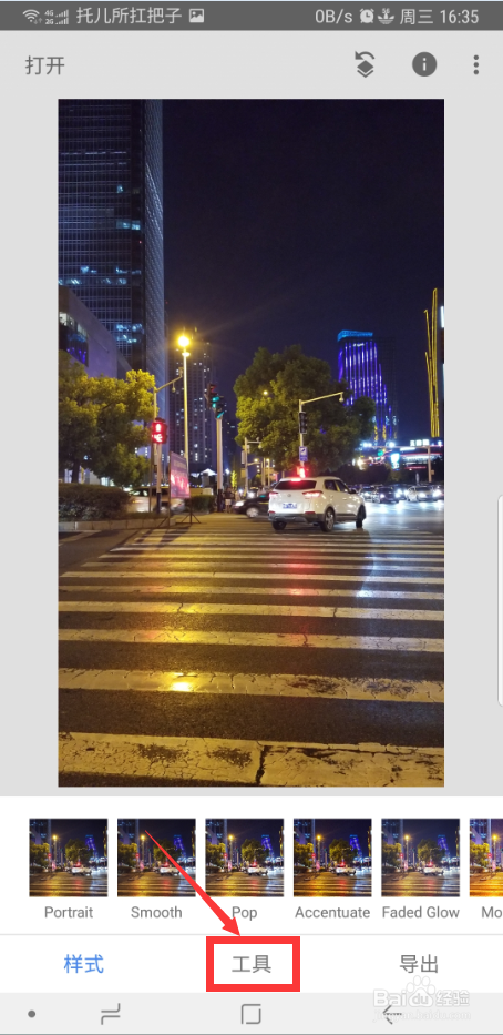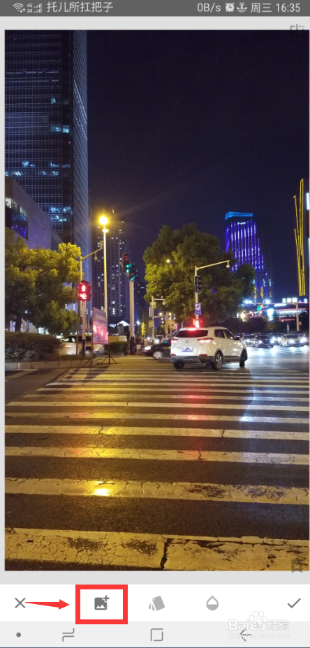 打开手机上的snapseed软件,添加本身拍摄的夜景照片