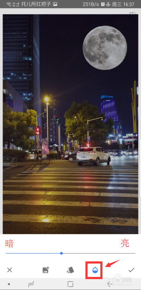- 操作演示利用的是安卓手机,然后snapseed软件百度搜刮下载,我只能帮你到这了,剩下的就靠你本身操作咯,快去建造你的超等月亮吧