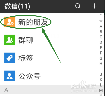 在微信通信录里面找到最上面的新的伴侣一项,点击打开。