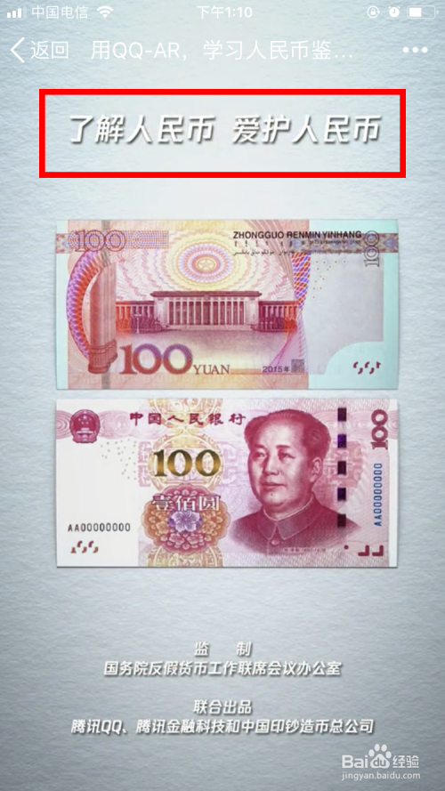 比来,小编传闻用手机QQ 扫一扫 第五套面值100元的人平易近币,就能在屏幕上呈现凤鸟起飞、茶花绽放、3D版人平易近年夜礼堂以及介绍人平易近币防伪的常识AR视频。小编就找来一张第五套100元的人平易近币,用QQ 扫一扫 试了试 ,还真的呈现了反假币的AR视频。下面,小编就带大师来体验一下如何用QQ-AR看人平易近币防伪常识视频。
