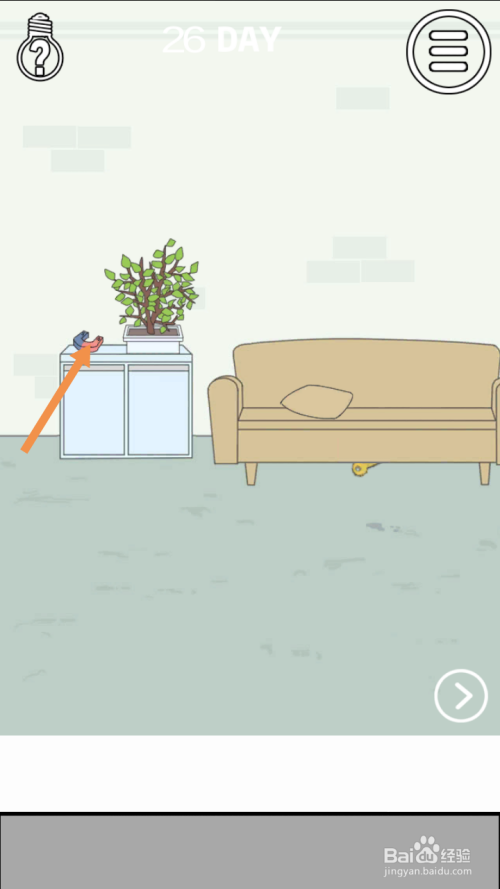 获得钥匙后,点击标的目的右箭头,进入右边房间。